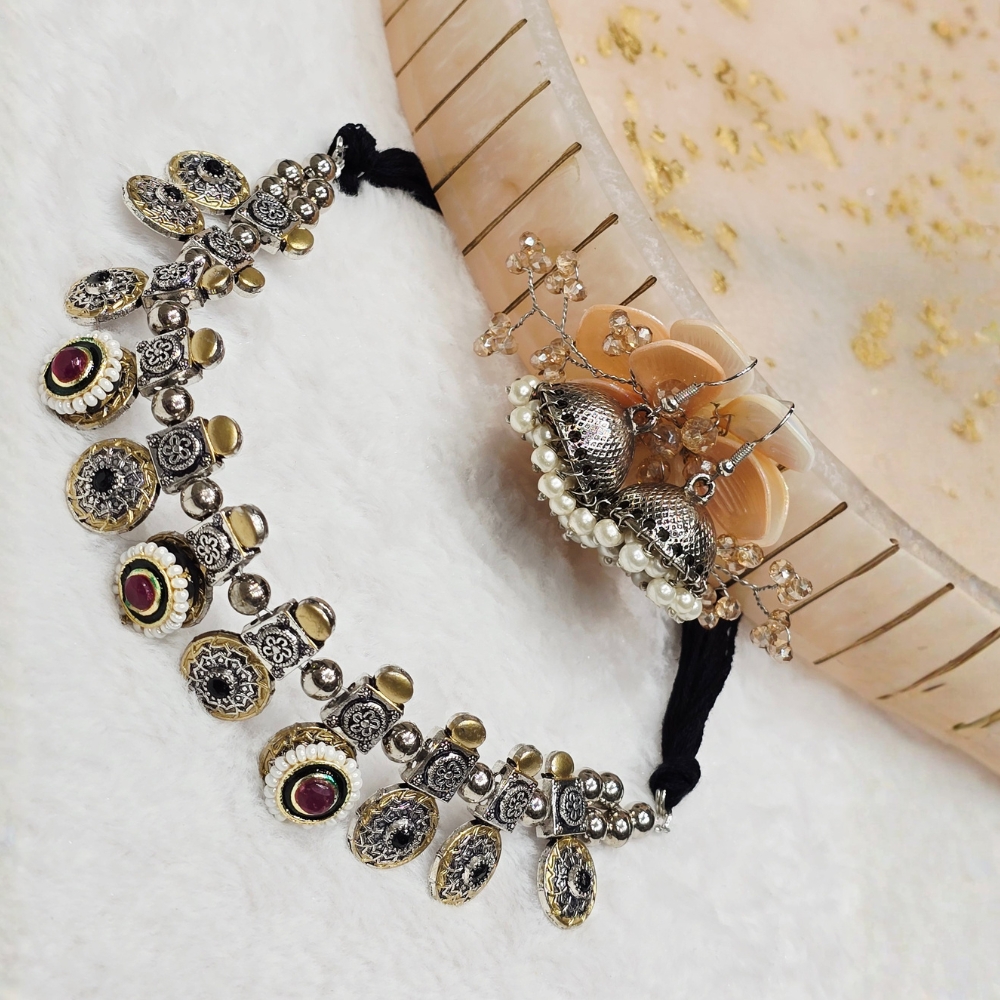 Every woman has a different and unique fashion sense. With us, you get a wide range of oxidised jewellery. Buy the oxidised earrings online to style your casual look or an oxidised choker necklace to enhance your festive look.