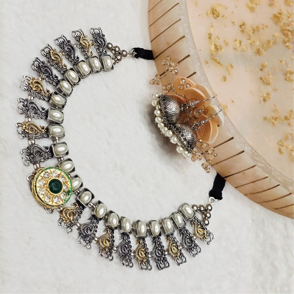 Oxidised Collection: The distinct appeal and charm of the oxidised jewellery set are hard to ignore. In today’s fashion world, the oxidised jewellery has become a must-have. In fact, it is so versatile that you can pair oxidised imitation jewellery for women with casual, western, indo-western, and ethnic outfits with the same comfort.